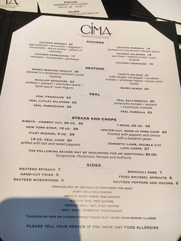 Welcome to Cima Restaurant and Chop House, where Italian cuisine meets exquisite seafood in a setting that beautifully balances sophistication and comfort. Nestled in Wilbraham, MA, Cima is the perfect dining destination for groups, families, or a romantic evening out.
